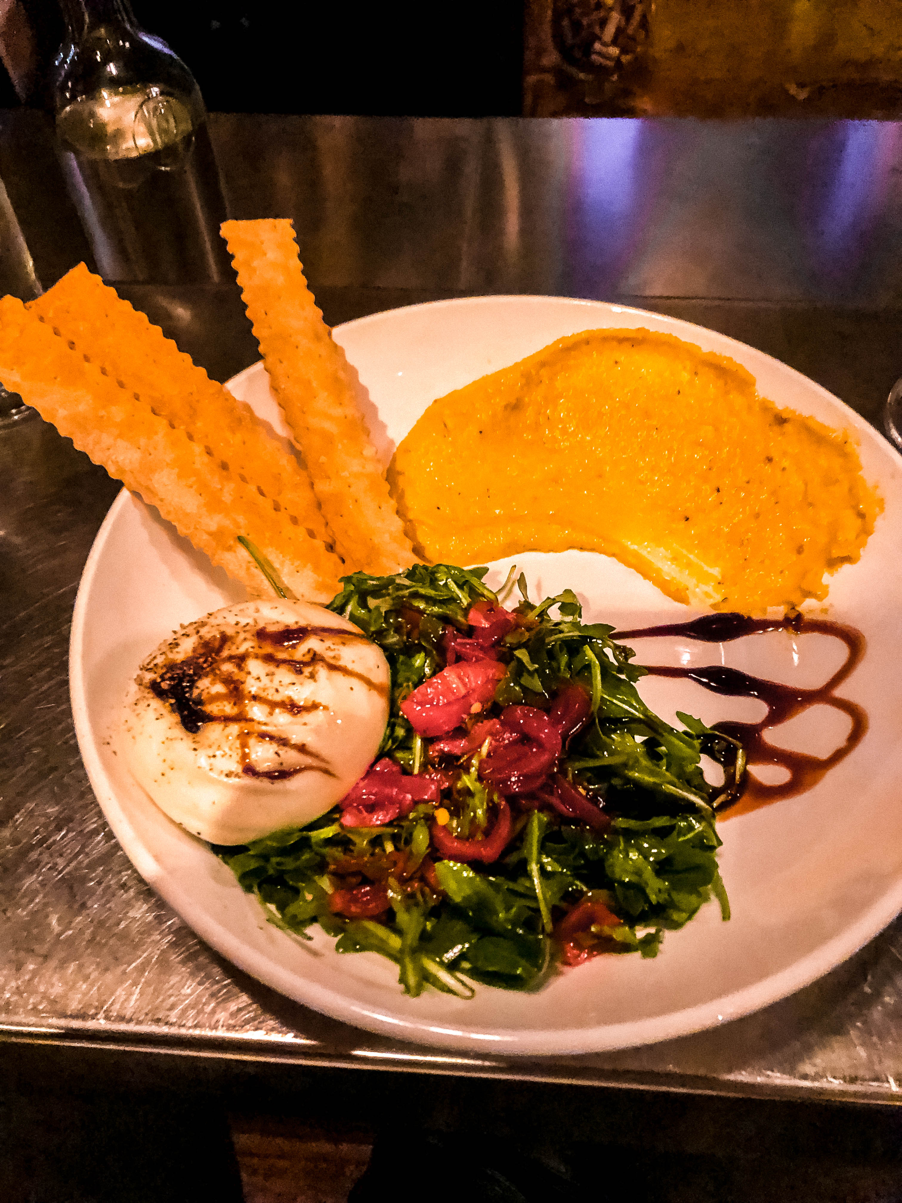 I didn’t do a lot of cooking this week because I was extra-busy! I had a few great meals out, including these meltingly tender pork belly skewers from a Japanese restaurant near my home. I also went back to my hometown of Cedar Rapids, IA for my brother’s fiancé’s bridal shower and got to eat at my very favorite restaurant, possibly in the world. It’s called Lincoln Wine Bar and it’s in a little Iowa town called Mount Vernon and is worth a pilgrimage. Wood-fired Neopolitan-style pizza in tons of unique and exciting combinations (my all-time favorite is the Greens pizza, which I recreated here). They always have some form of burrata as an appetizer (also, I recreated one of their staples here), but this weekend they had a new, unusual one with a schmear of golden beet romesco sauce. I was totally NOT excited about that but it was a total showstopper. I will be recreating!